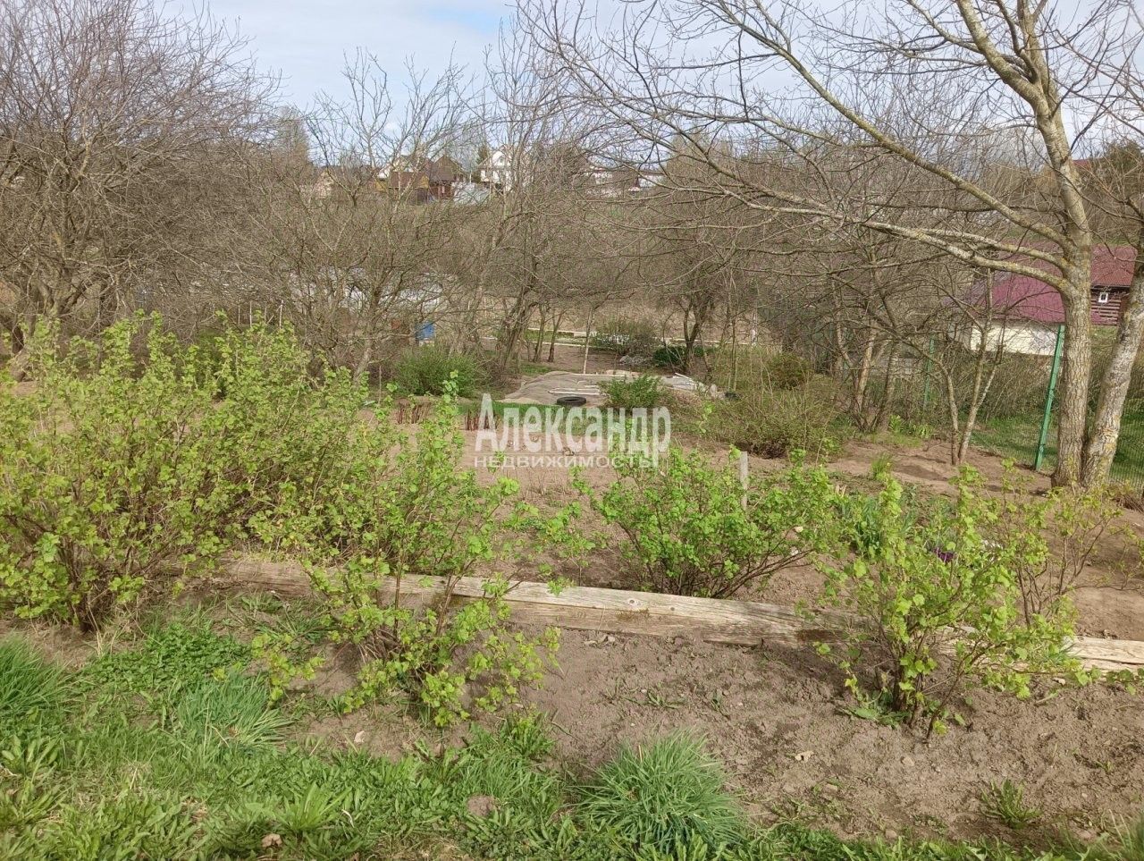 Участок огорожен только с одной стороны. Имеет вытянутую форму и небольшой уклон. Участок разработан, есть яблони, сливы, груши, смородина, клубника.