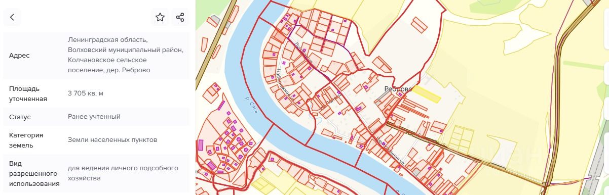 Продается отличный большой (37 соток) участок в красивой деревне Реброво на реке Сясь, под ИЖС.