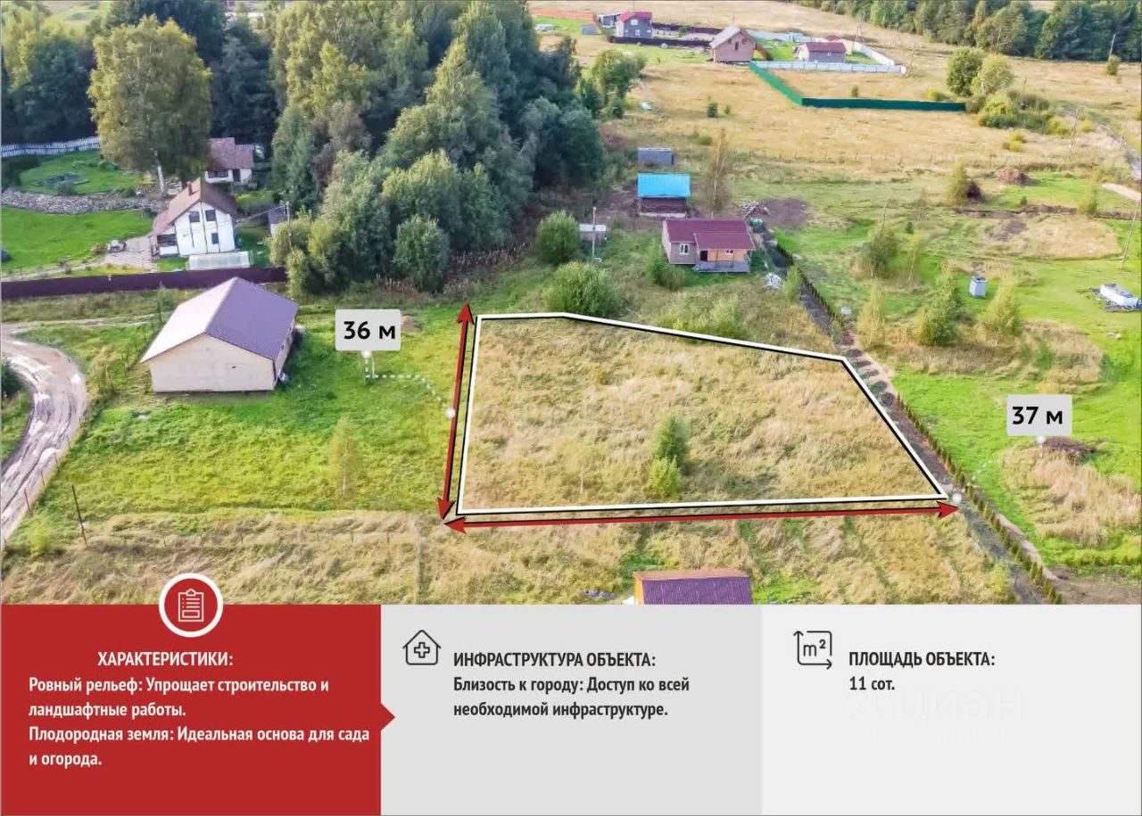 * Просторный участок 11 соток: Достаточно места для реализации любых проектов. * Ровный рельеф: Упрощает строительство и ландшафтные работы. * Плодородная земля: Идеальная основа для сада и огорода. * Живописное окружение: Красота природы и свежий воздух. * Тишина и спокойствие: Атмосфера загородного уединения. * Близость к городу: Доступ ко всей необходимой инфраструктуре. * Возможность приобрести дом: Готовое решение для загородной жизни.