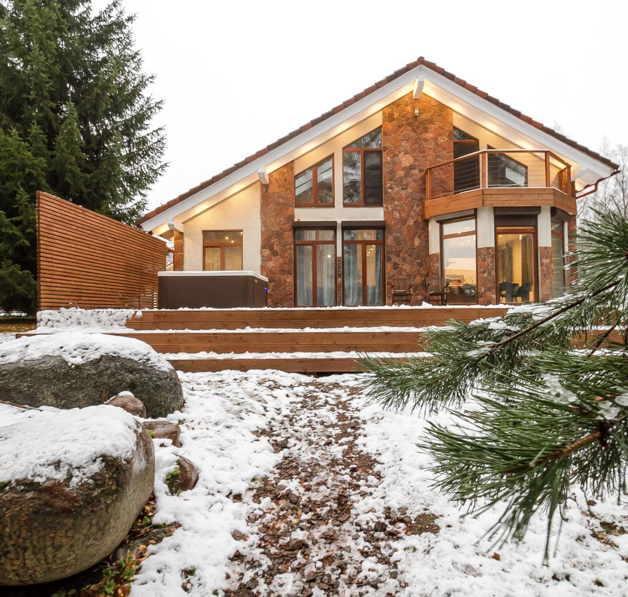 Для жизни и отдыха: •В первом доме — финская сауна Harvia, во втором — русская баня с дровяной печью •На террасах обоих домов — джакузи с подсветкой и подогревом воды. •Вода поступает из озера, но проходит современную систему очистки и фильтрации •Отопление: дизельный генератор, тёплые полы и радиаторы •Электроснабжение: 15 кВт на участок •Два удобных въезда: с центральной улицы и через отдельные автоматические ворота с Правобережной ул.