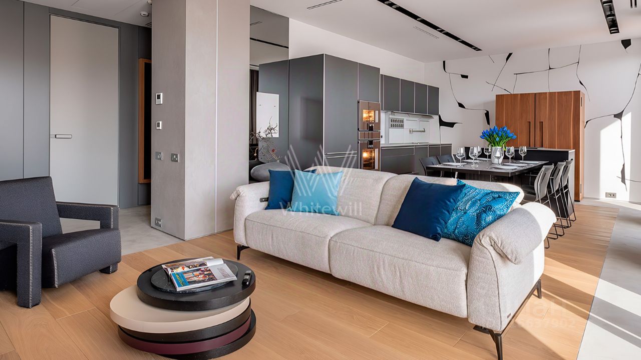 Апартаменты полностью укомплектованы премиальной мебелью. Установлена немецкая кухня Bulthaup.