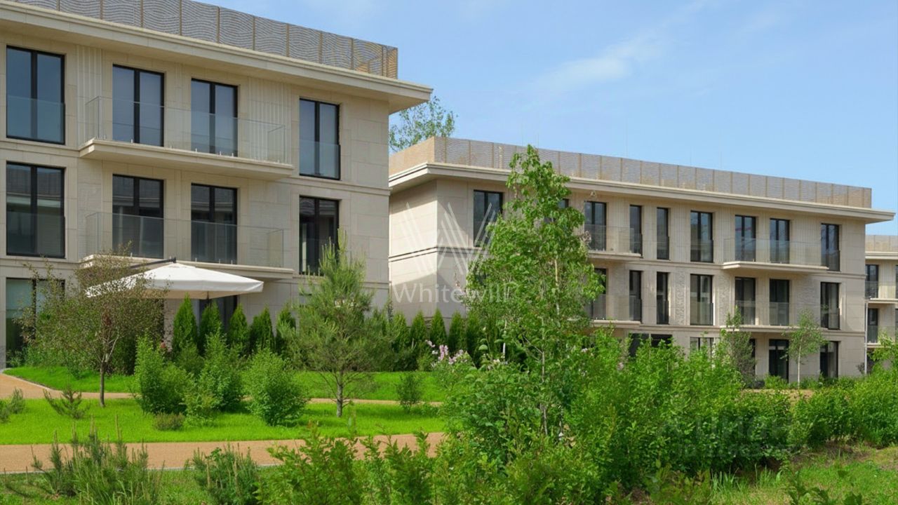 Главное о доме. River Residences стоит на берегу Москвы-реки в окружении Серебряного бора. Архитектуру ведёт SPEECH Сергея Чобана: спокойные неоклассические линии, декоративные панели и крупное остекление. Комплекс объединяет корпуса с апартаментами, таунхаусы и несколько вилл — у каждого формата свой ритм жизни и приватность. Во входных группах — натуральный камень, мягкий свет и камерные зоны для встреч. На территории проложили дорожки среди хвойных деревьев, оборудовали места для отдыха у воды и прогулочные маршруты к Живописному мосту. Работает собственная лодочная линия и причал, удобно уходить на воду прямо из дома. Для автомобилей организовали многоуровневый паркинг со спуском на лифте.