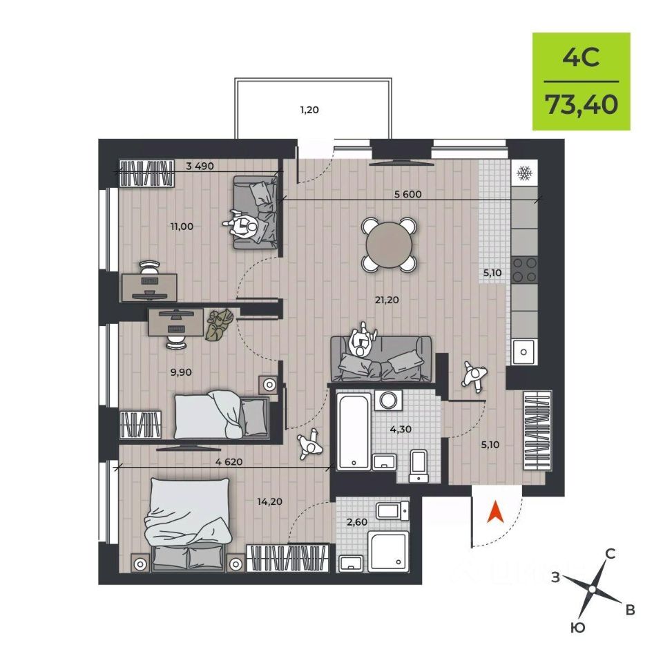 продам 4-к, Курчатова, 16 стр.9 626 067 ₽