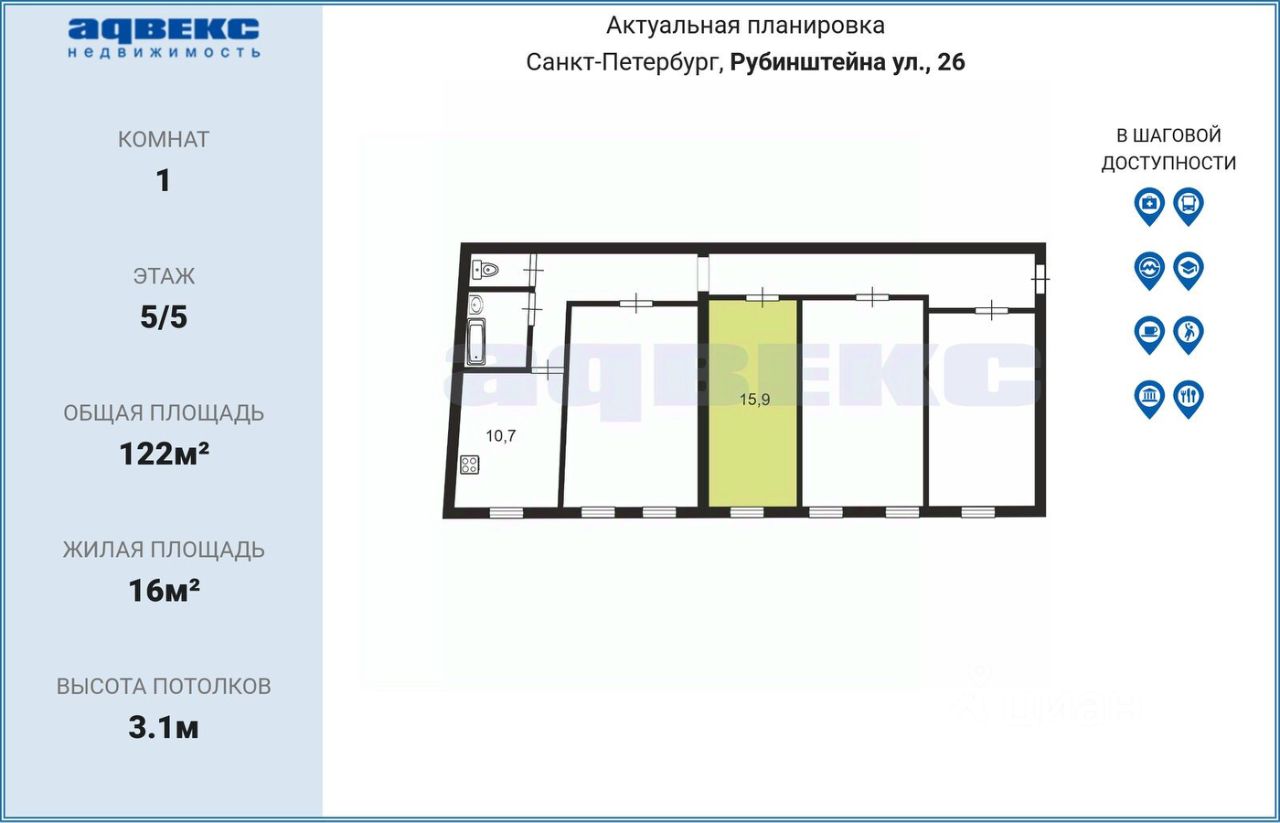 продам комнату, Рубинштейна, 262 790 000 ₽