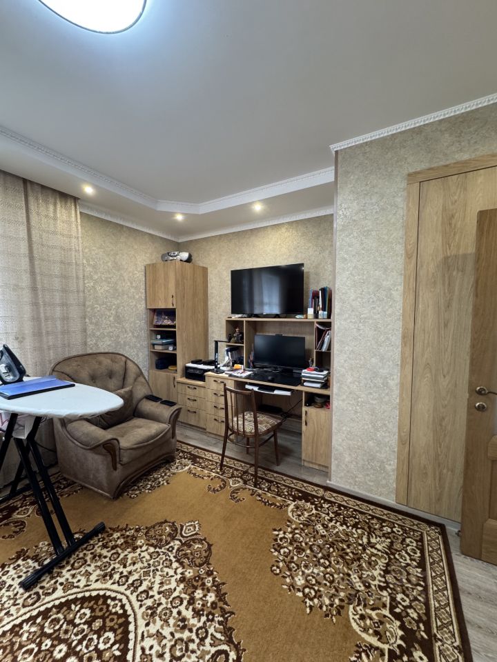 Квартира имеет продуманную планировку: жилая площадь составляет 56.4 квадратных метров, а кухня занимает 11.3 квадратных метров, предоставляя достаточно места как для готовки, так и для совместных семейных ужинов. Благодаря евроремонту, выполненному с использованием качественных материалов, новым владельцам не потребуется дополнительных вложений можно сразу начинать жить и наслаждаться комфортом.Две металлические повышенной взломостойкости с шумоизоляцией двери,двухконтурный газовый котел BAXI,новый холодильник ШАРП размером 190/80 см,батареи с регуляторами температуры,два кондиционера,межкомнатные двери из шпона дуба,двухуровневые потолки со светодиодным освещением,подоконники из искуственного камня, новая мягкая мебель в гостиной,встроенные шкафы.