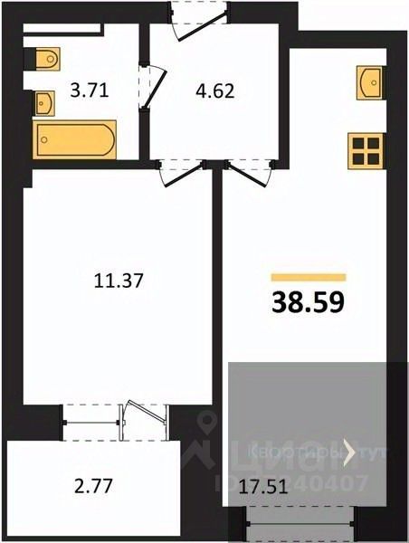 Квартира: 1 к 38,59 кв.м., 2 этаж в комплексе Дом у Ротонды, 1 очередь, корп.1, сдача: 4кв. , этажей: 28, адрес Воронеж г., Транспортная ул., д. 58, Застройщик: ГК ПЕРВОГРАД.