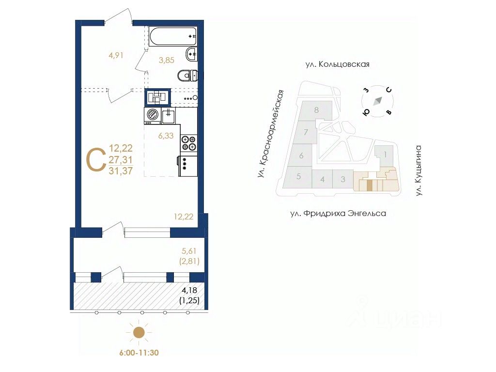 Строительная компания ''ВЫБОР'' предлагает купить однокомнатную квартиру в ''Дом на Фридриха Энгельса'' в Воронеже.