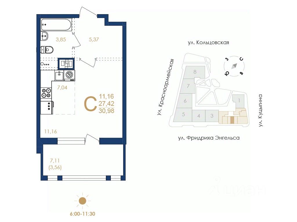 Строительная компания ''ВЫБОР'' предлагает купить однокомнатную квартиру в ''Дом на Фридриха Энгельса'' в Воронеже.