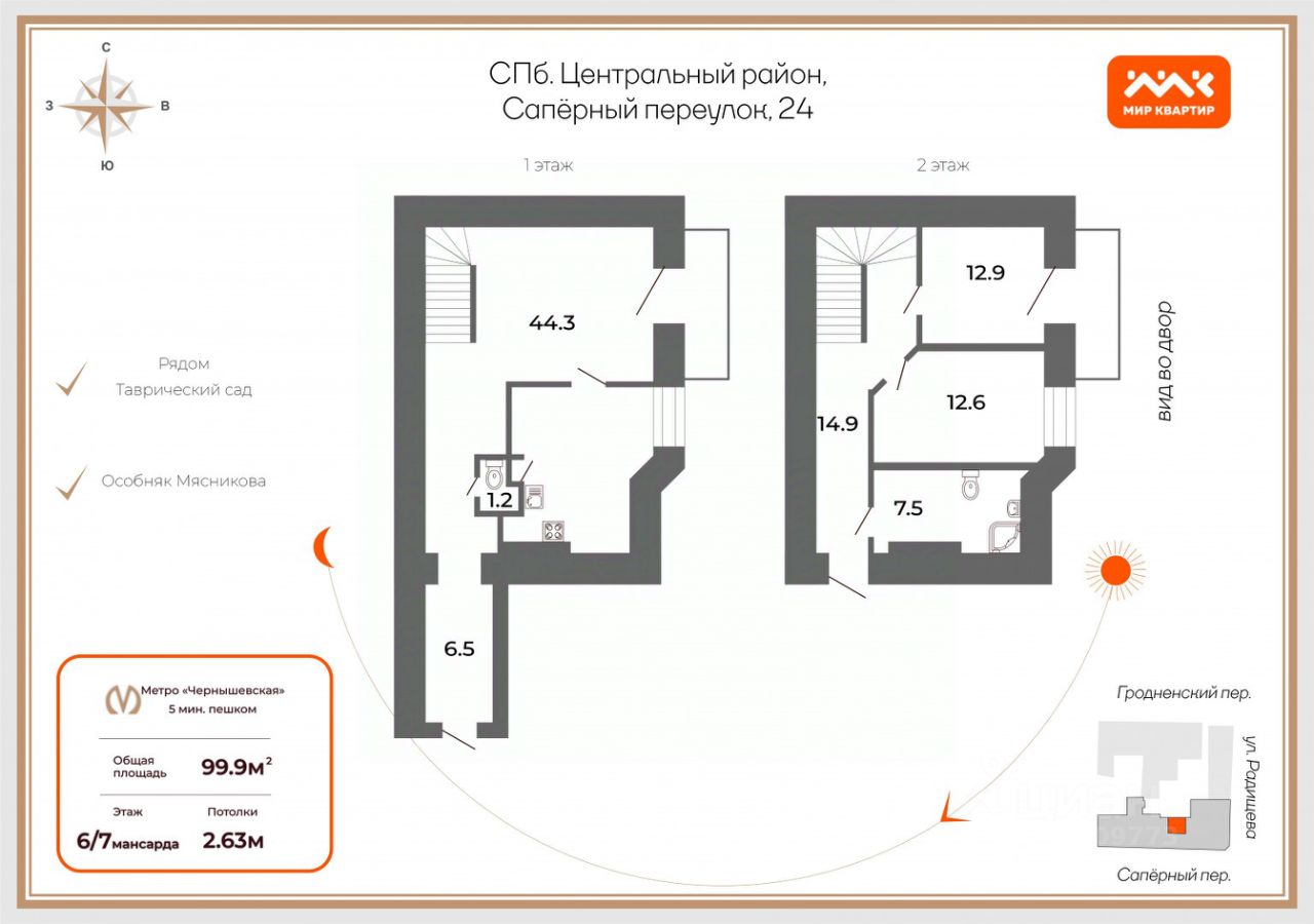 Это возможность жить в историческом центре, наслаждаясь тишиной и покоем, и в тоже время быть в курсе всех культурных событий, ведь в шаговой доступности Таврический дворец, Некрасовский сад, культурное пространство Дом Мясникова , так же 20-25 минут прогулки и вы на шумном Невском пр., Дворцовой площади, Марсовом поле.