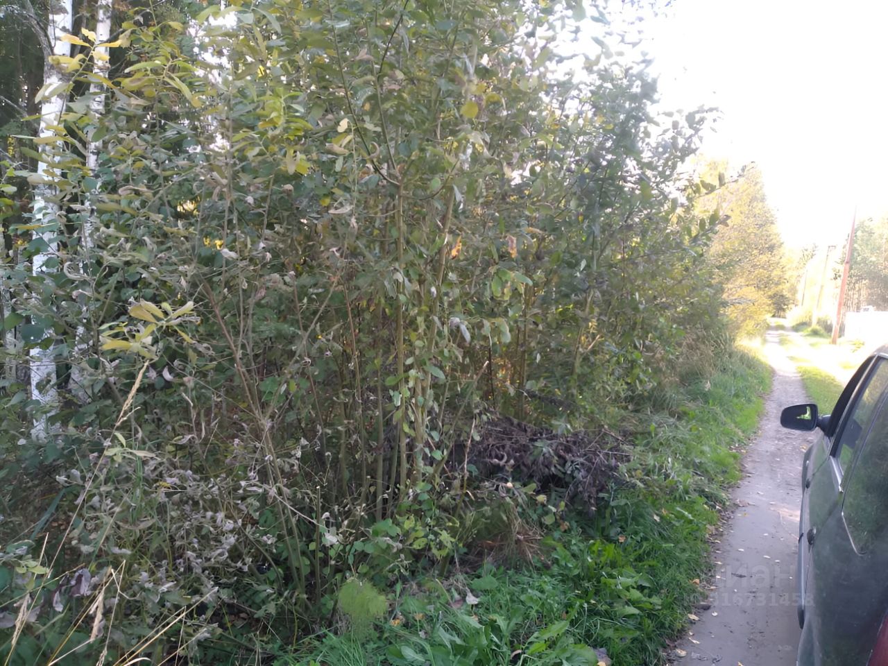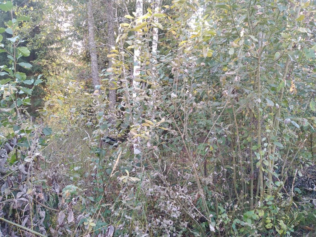 Участок не обработанный, на участке кусты и деревья.