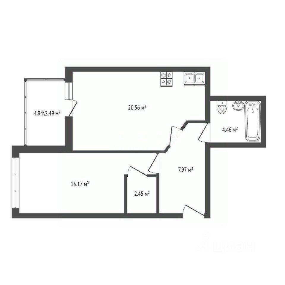 Одно из лучших предложений в Выборге. Квартира с видом на залив и самой удобной планировкой в проекте: Большая кухня-гостиная. Большая спальня с отдельной гардеробной или кладовой. Ванная правильной формы.
