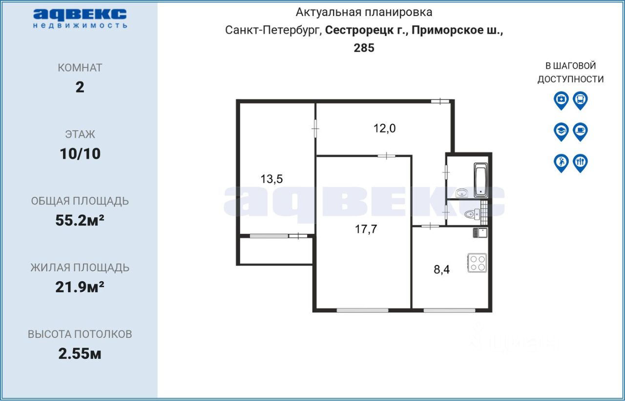 ID: 1913234 Предлагаем приобрести видовую . грамотно распланированную для комфортного проживания , двухкомнатную квартиру в самом Курортном районе Санкт-Петербурга.
