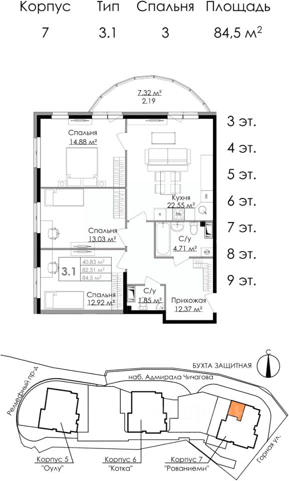 продам 3-к, Адмирала Чичагова набережная, 617 200 000 ₽