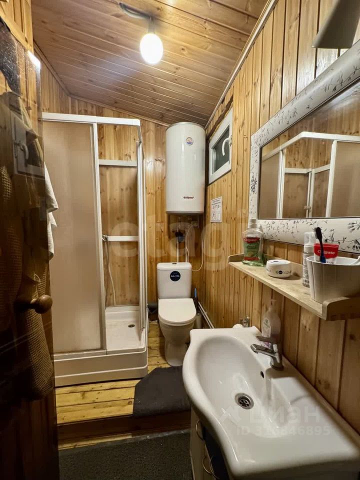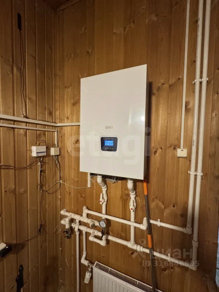 В доме две комнаты - 17,84 и 22,97 м2, кухня, баня, душевая и туалет. Установлен электрический котел с разведенной по дому системой отопления (водяное). Есть накопительный водонагреватель на 50л. На кухне печь (альтернативный источник обогрева и для приготовления пищи). Подключена стиральная машина.