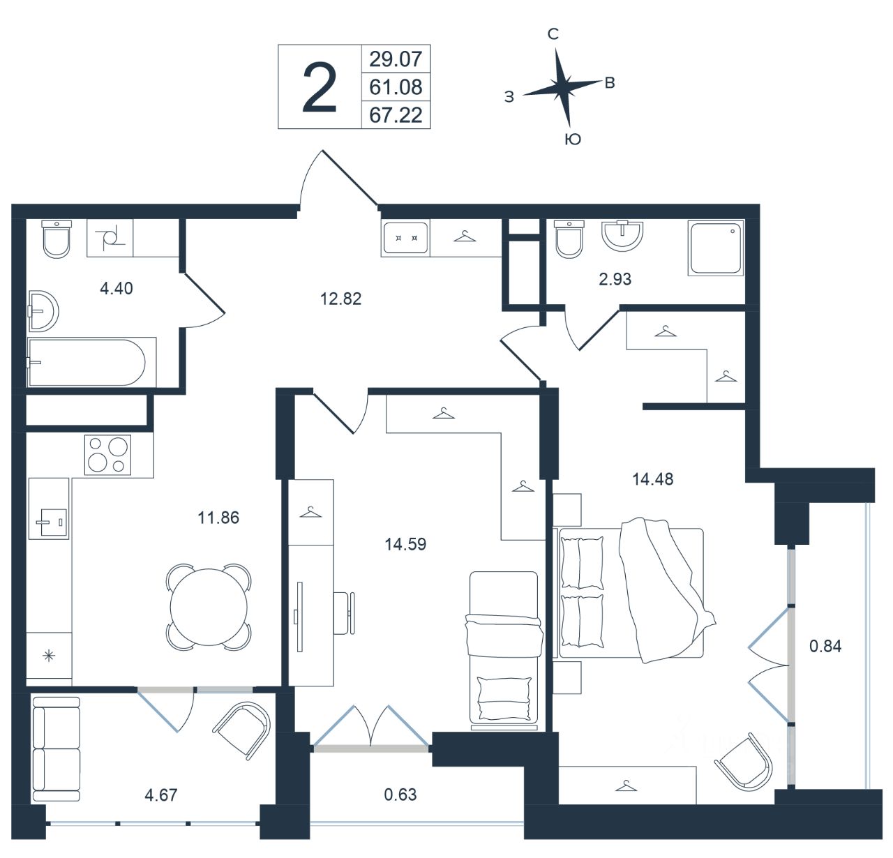 Продаётся 2-комнатная квартира в строящемся доме (Дом 1), срок сдачи: III-кв. 2027, общей площадью 67.22 кв.м., на 2 этаже. Новый жилой комплекс ''Архитектор'' от группы компаний ''Девелопмент-Юг'' расположен по адресу: г. Владивосток, по ул. Бежецкая.