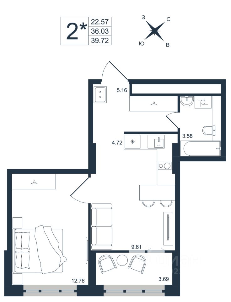 Продаётся 2-комнатная квартира в строящемся доме (Дом 1), срок сдачи: III-кв. 2027, общей площадью 39.72 кв.м., на 8 этаже. Новый жилой комплекс ''Архитектор'' от группы компаний ''Девелопмент-Юг'' расположен по адресу: г. Владивосток, по ул. Бежецкая.