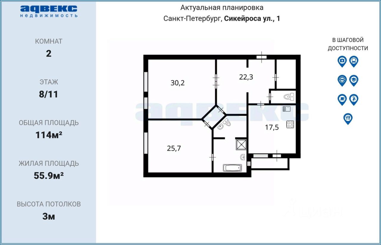 продам 2-к, Сикейроса, 124 500 000 ₽