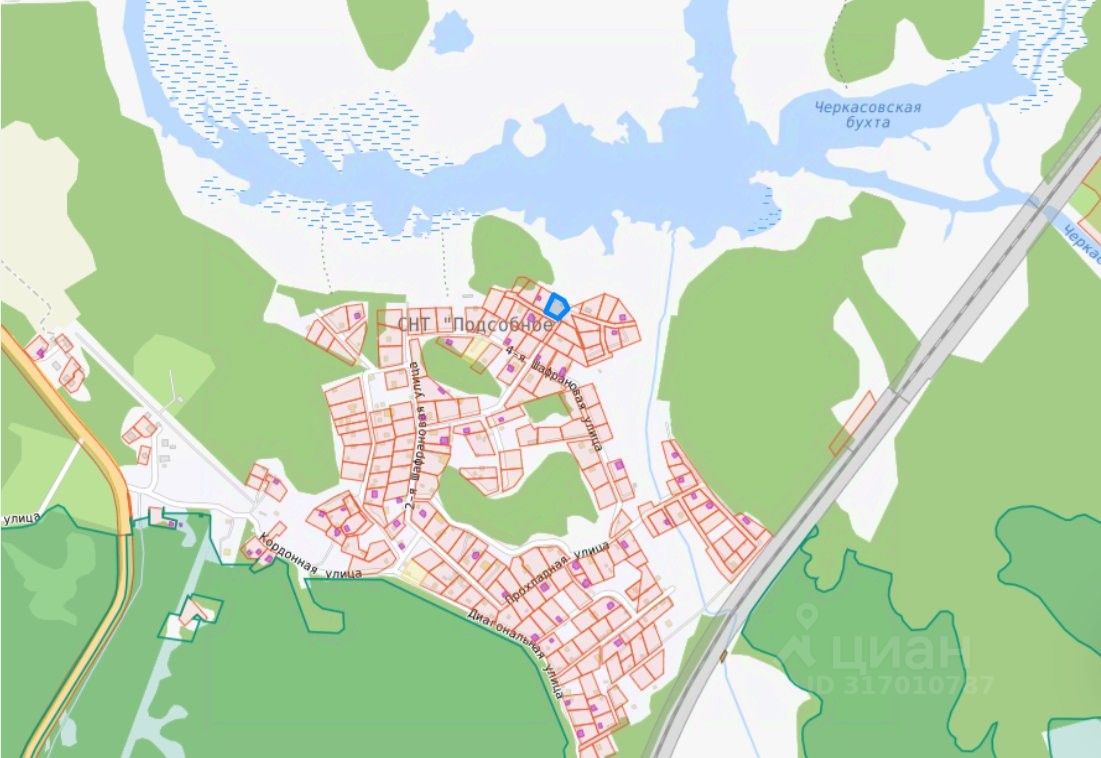 337979 Первая береговая линия бухты Черкасовская. Земельный участок 11,22 сотки в благоустроенном обжитом садоводстве в 5 км от Выборга, СНТ ''Подсобное'', земли населенных пунктов.