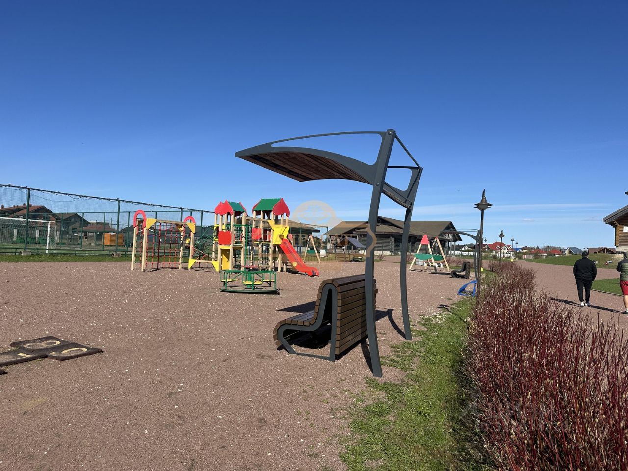 Добротный коттеджный поселок, КПП, охрана, видеонаблюдение, шлагбаумы. В центре поселка организована большая функциональная рекриационная зона с индивидуальным красивым водоемом, пляжем, прогулочными и велосипедными дорожками, футбольным полем, теннисным кортом, детскими площадками. Для семей с детьми организован частный детский сад с развивающими кружками и своей территорией.