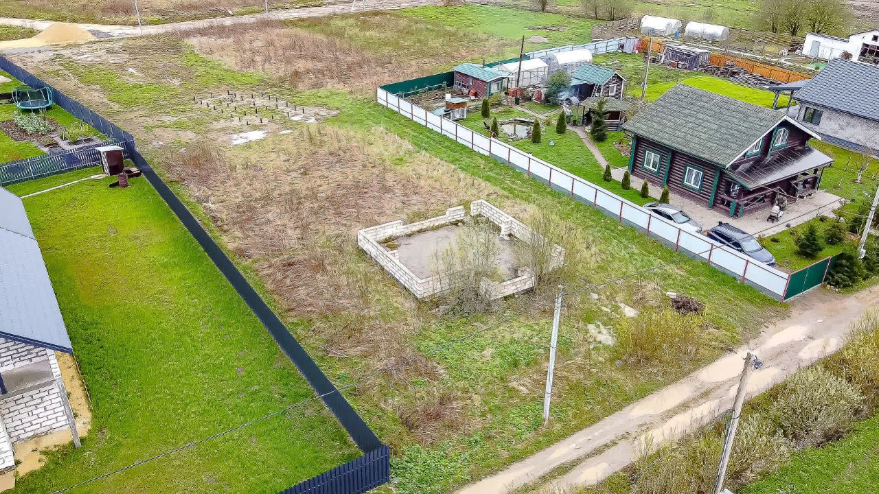 - Межевание сделано - Участок разработан - Вид земли Для ведения дачного хозяйства - На участке имеется фундамент лента + плита под дом 8x9,5 - С двух сторон забор