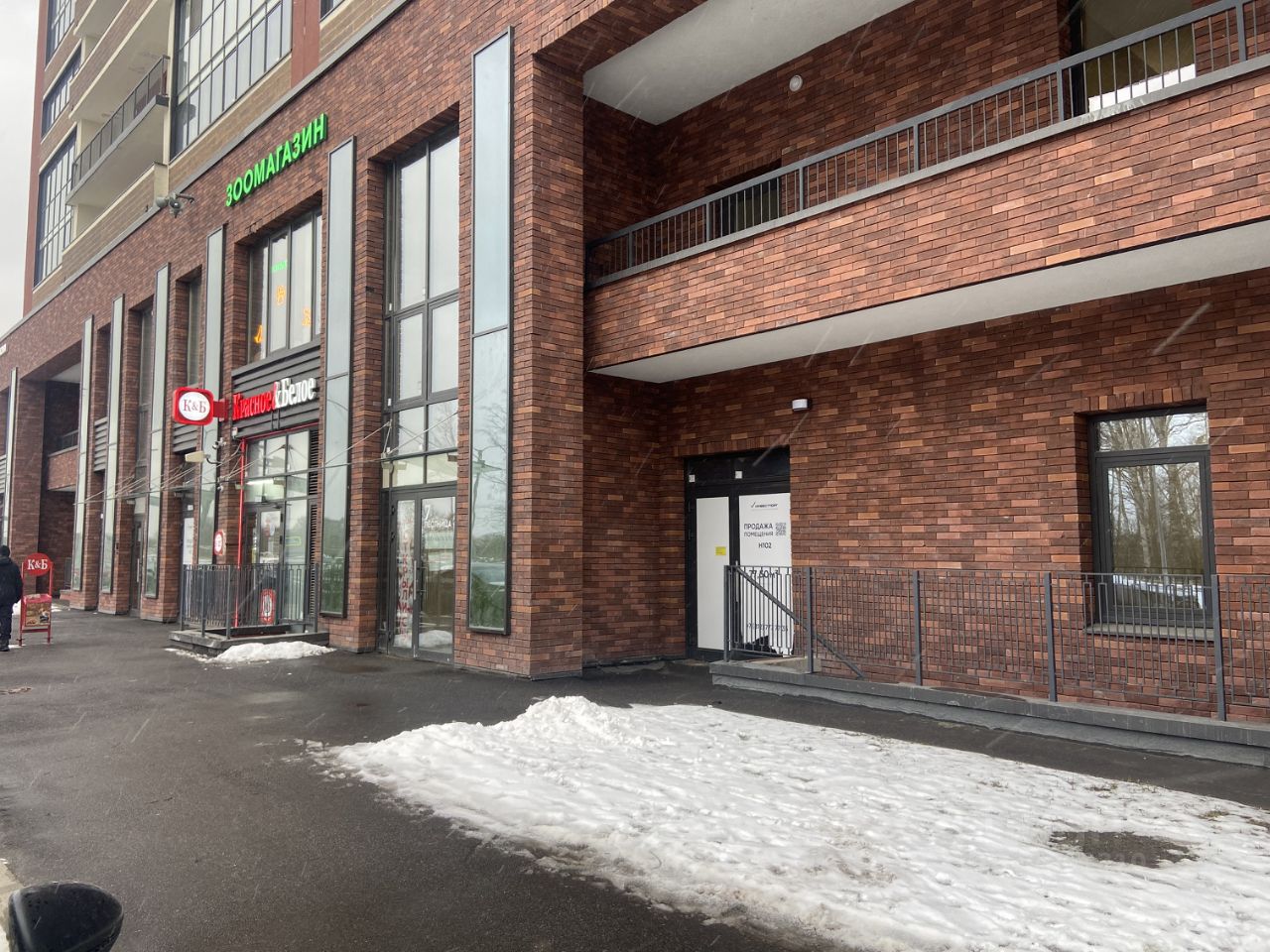 Помещение расположено в жилом комплексе состоящем из 9 секций по 22 этажа. Соседское расположение с Магнитом и магазином Красное Белое обеспечивает хороший пешеходный трафик.