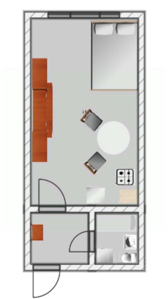 В квартире: двуспальная кровать, места для хранения, холодильник, плита, стиральная машина