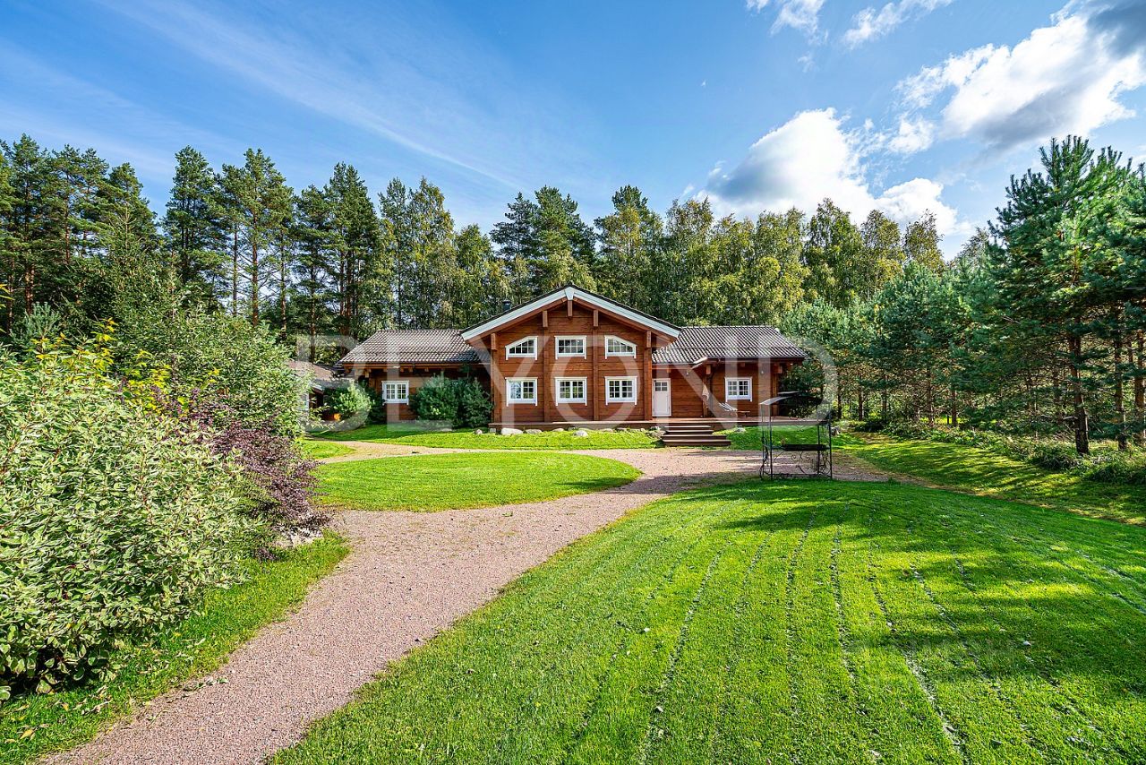 Предлагается к продаже жилой ансамбль для круглогодичного проживания. Роскошный двухэтажный дом построен из цельного бруса особо ценной породы Алтайского кедра (400мм / 220мм). Древесина особо ценной породы Алтайского кедра обладает уникальными специфическими свойствами, благотворно и лечебно воздействует на организм человека, являясь самым ценным материалом для домостроения. Не подвержен гниению и старению. Дом, его внутреннее пространство и интерьеры спроектированы и реализованы художником и скульптором с международным признанием. Высокие потолки. На первом этаже - просторная гостиная высотой 6 метров, с примыканием столовой и функциональной оборудованной кухни. Четыре спальни, два санузла, финская сауна, гардеробные. На втором этаже оборудован спортивный зал, детские комнаты. Домовладение расположено на первой линии реки Бурная, в устье Ладожского озера. Собственная пристань и глубина позволяют причалить судну ''река-море'', открывая выход в Ладогу и через Неву в Балтику. Благоустроенная территория с насаждениями и газонами, большим собственным прудом с рыбой и лилиями. Участок защищен буферной парковой зоной 10 Га. Автономность обеспечивается газовой котельной, дублирована дровяной котельной, собственная артезианская скважина с прекрасными питьевыми показателями, собственная ЛЭП и подстанция, круглосуточная охрана периметра, КПП. Дополнительно на территории расположен отдельный гостевой дом из бруса, просторная отапливаемая художественная мастерская, теплый гараж на два авто, отдельные открытые навесы на 3 авто.