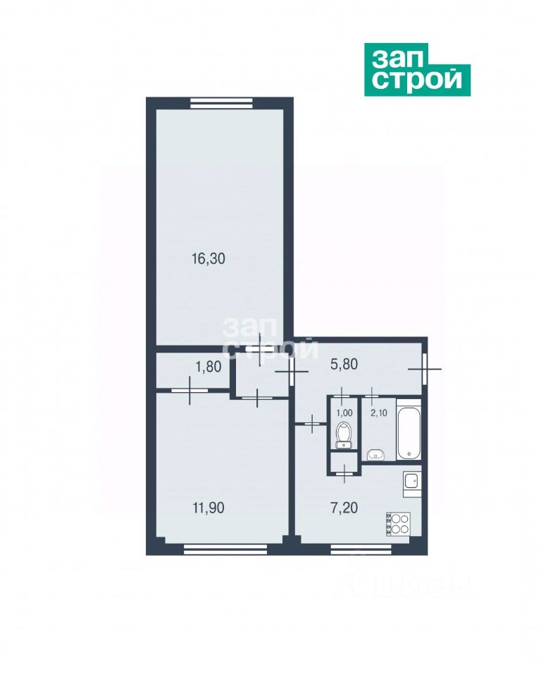 О квартире: 2х-комнатная квартира, общей площадью 46,1 м², кухня - 7,2 м², комната 1 - 16,3 м², комната 2 - 11,9 м², раздельный с\узел, коридор 5,8 м². Свежий ремонт.