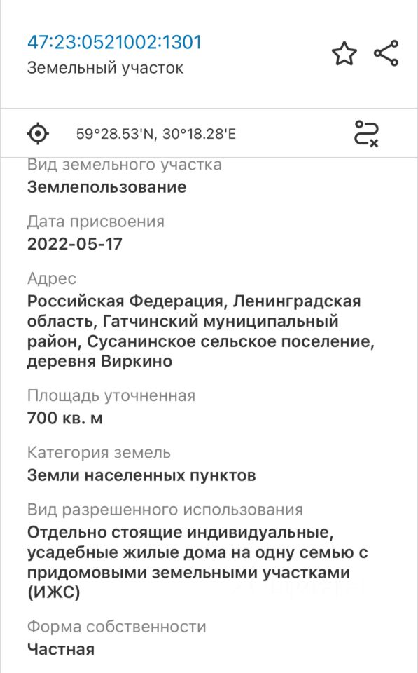 Предлагаем в прямой продаже земельный участок площадью 700кв.м. в деревне Виркино, Гатчинский район.