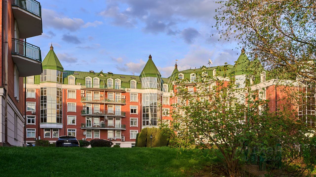 Главное о доме. Клубный ансамбль на шести гектарах с ландшафтным парком, прудами, фонтанами и прогулочными дорожками. Переменная этажность от камерных секций до башни, кирпичные фасады с эркерами и зелёные крыши создают узнаваемый силуэт. Комплекс завершён в начале двухтысячных, в составе сто четырнадцать квартир и коллекция пентхаусов. Для жителей работает собственная инфраструктура: фитнес и бассейн, спортивные площадки и теннисный корт, салон красоты, сауна, супермаркет, отделение банка и ресторан. Территория закрыта и охраняется, по периметру видеонаблюдение, под землёй — паркинг с прямым доступом в лобби. Это формат ''городского парка у дома'', где свет, тишина и сервис собираются в одном адресе.