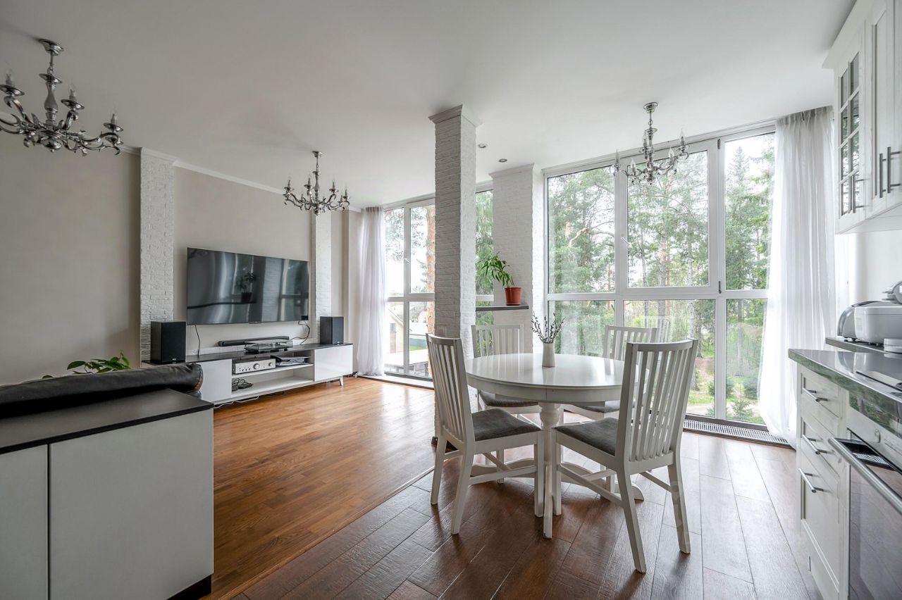 Три изолированные комнаты, мастер спальня с собственным санузлом, просторная кухня-гостиная со встроенной техникой. Квартира очень теплая и светлая с потрясающим видом на сосновый лес из каждой комнаты.
