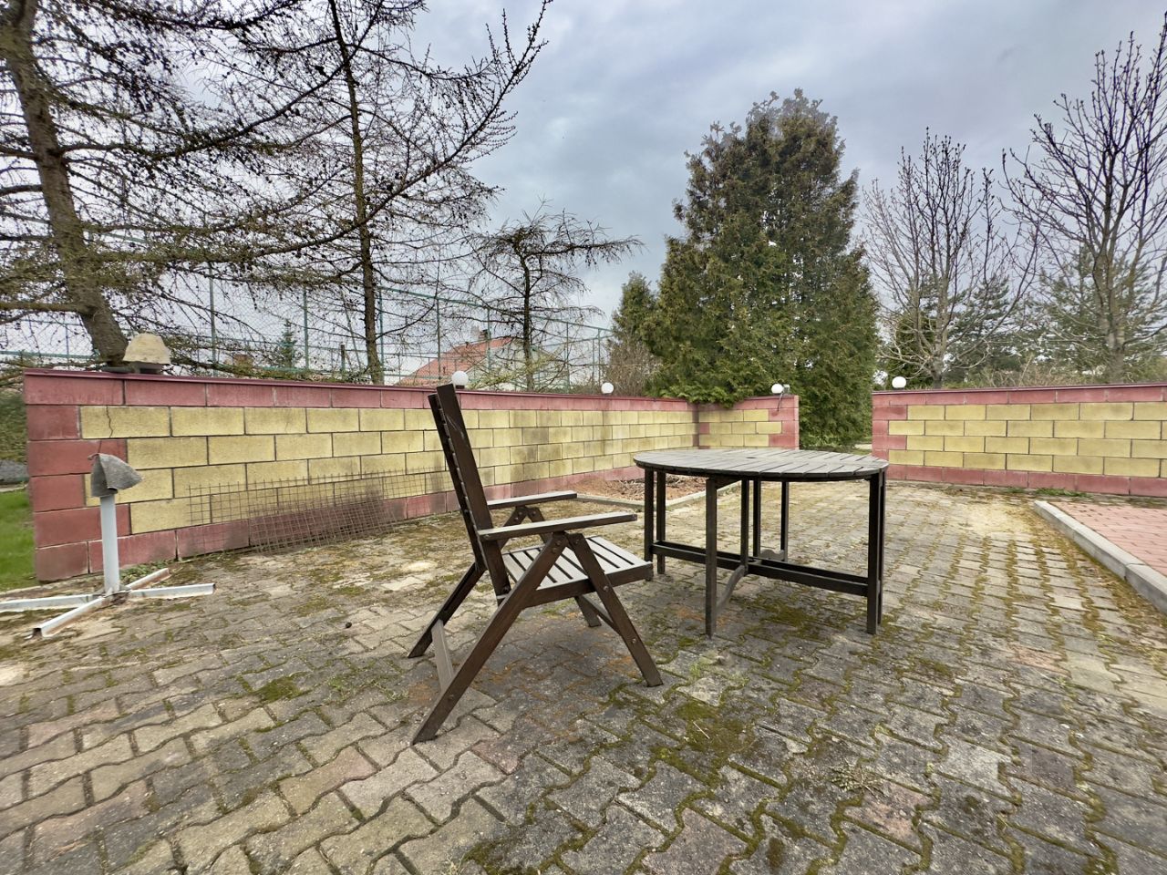 Участок полностью огорожен, выполнено мощение.