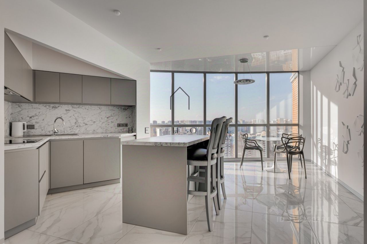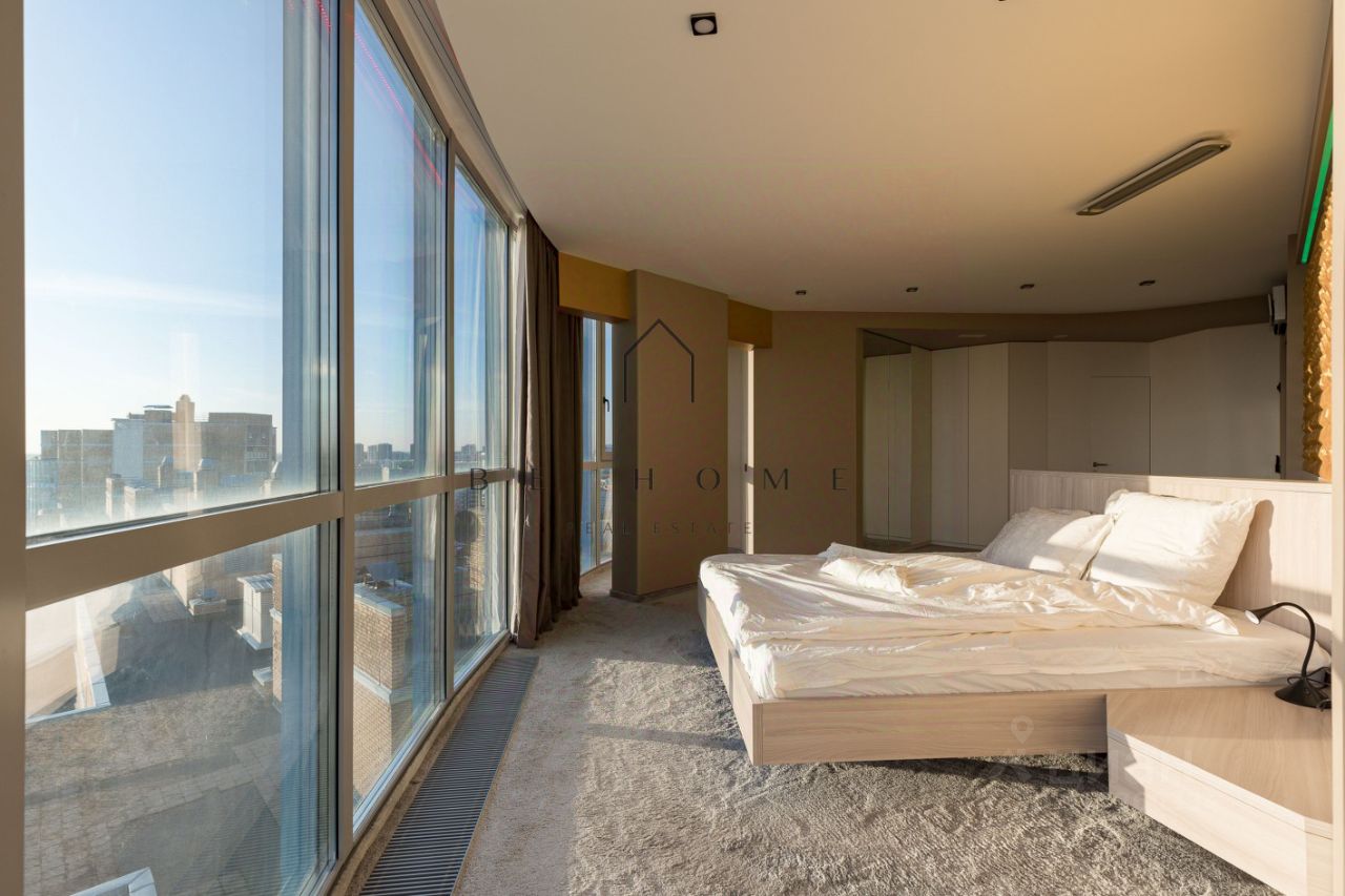 Просторная площадь квартиры 126.4 м² (фактически 141м2) включает в себя кухню, гостиную, смежную с кабинетом/детской комнатой, а также отдельную спальню. Идеальный вариант для небольшой семьи. Здесь два полноценных санузла с душевыми, выполненные с использованием качественных материалов. Стильная кухня с обеденной зоной, оборудованная высококачественной техникой Gorenje. Особое внимание стоит уделить кухонному острову, который станет настоящим сердцем вашего дома, а холодильник типа side-by-side идеально вписан в скрытую систему хранения. Дизайнерское решение включает скругленные стены, скрытые двери, гипсовые декоративные элементы, добавляющие элегантности и уюта. Встроенная система хранения в холле, кухне и спальне представляет собой удобную гардеробную комнату, что позволит поддерживать порядок. В квартире продуманы различные сценарии освещения, создающие атмосферу под любое настроение — от яркого рабочего света до мягкого вечернего. Благодаря высокому этажу, панорамному остеклению и современным решениям, в квартире всегда светло, а виды на город создают ощущение простора и свободы.