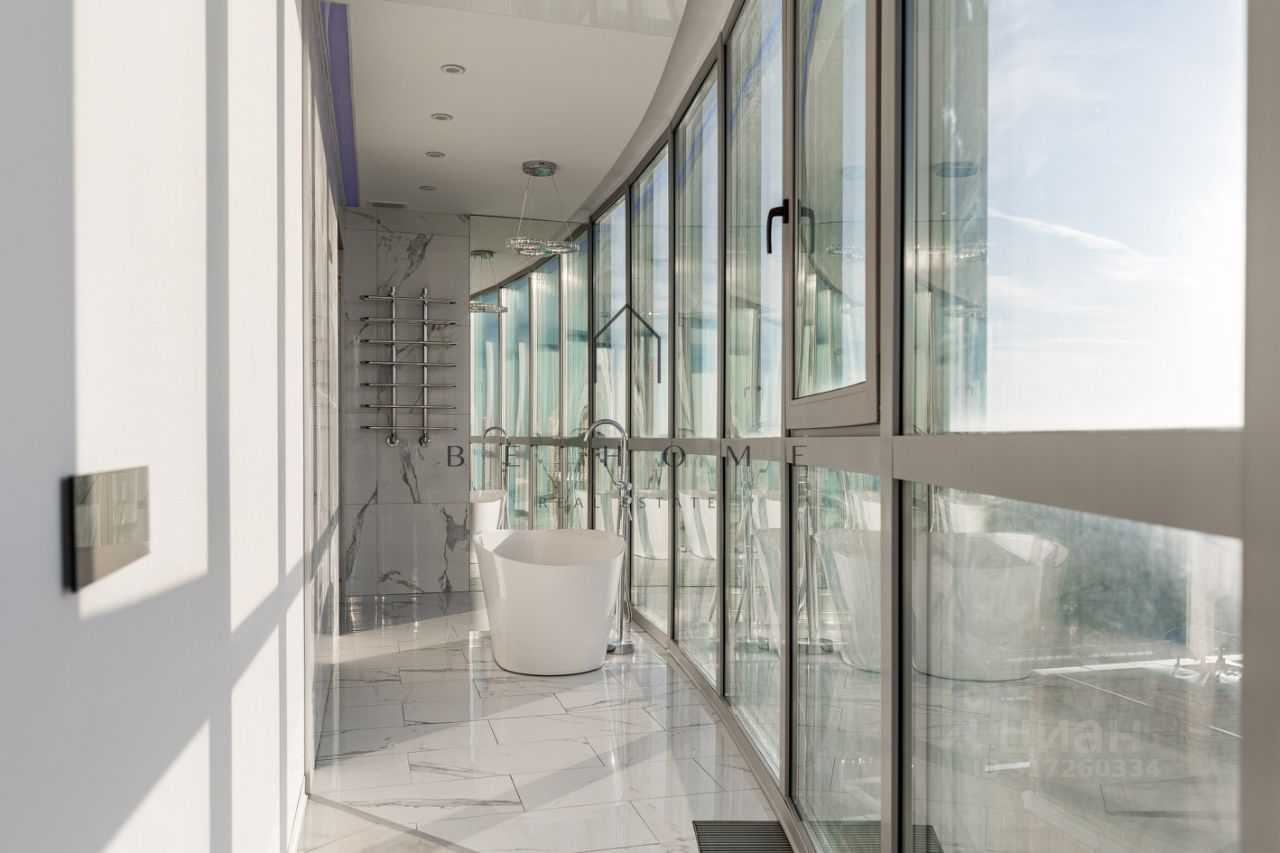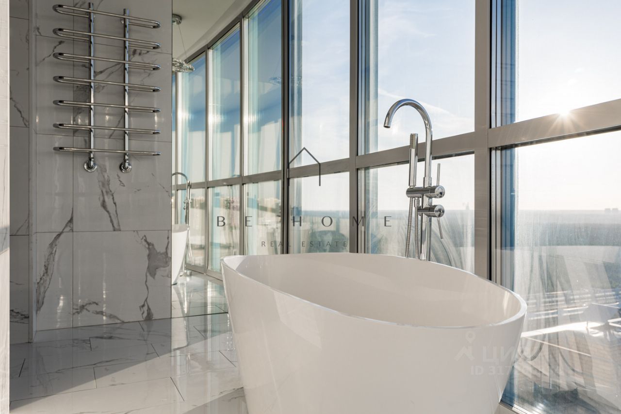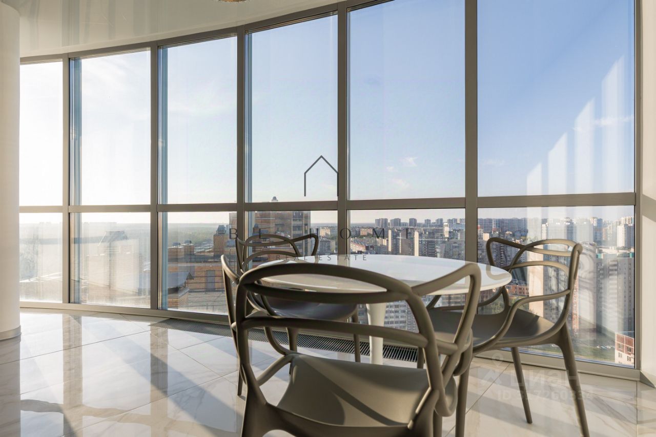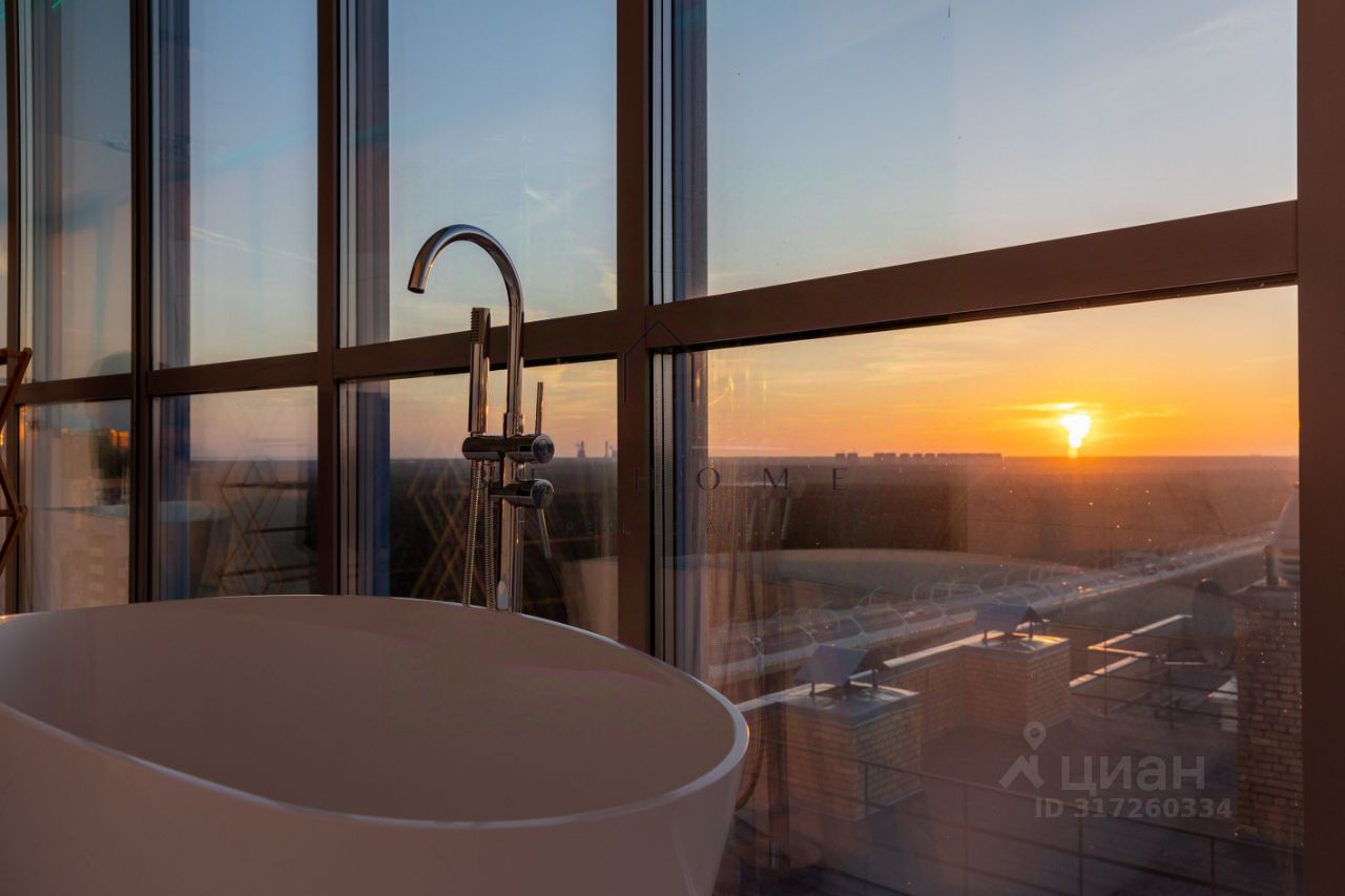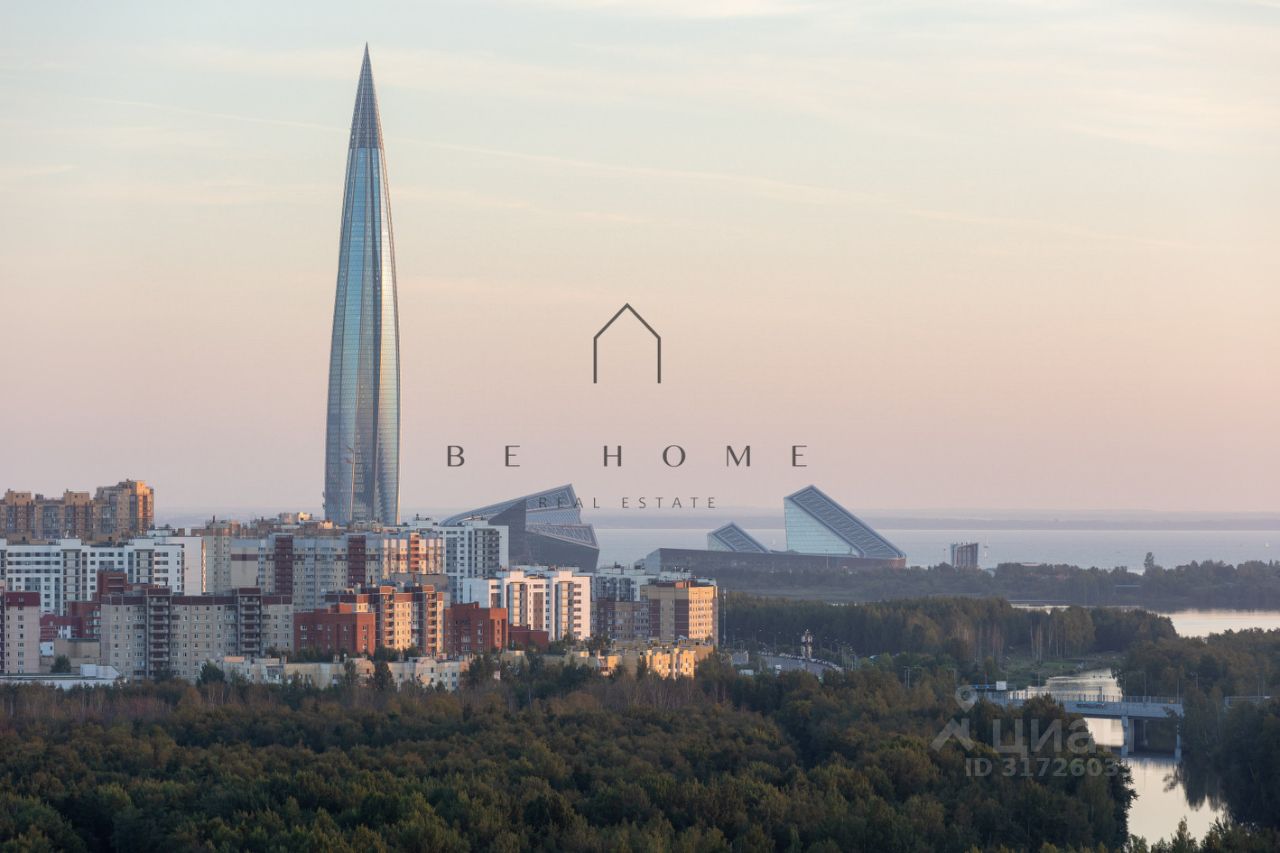 Квартира расположена на 22-м этаже и занимает 1/3 часть башни дома, где находятся лучшие квартиры в данном комплексе. Из панорамных окон открывается захватывающий вид на город с углом обзора в 180 градусов. Финский залив, Лахта-центр, развязка ЗСД, Юнтоловский заказник -- самые красивые природные и архитектурные объекты современного Петербурга как на ладони в любое время суток. Окна кухни выходят на северо-восток, комнат на юго-запад.