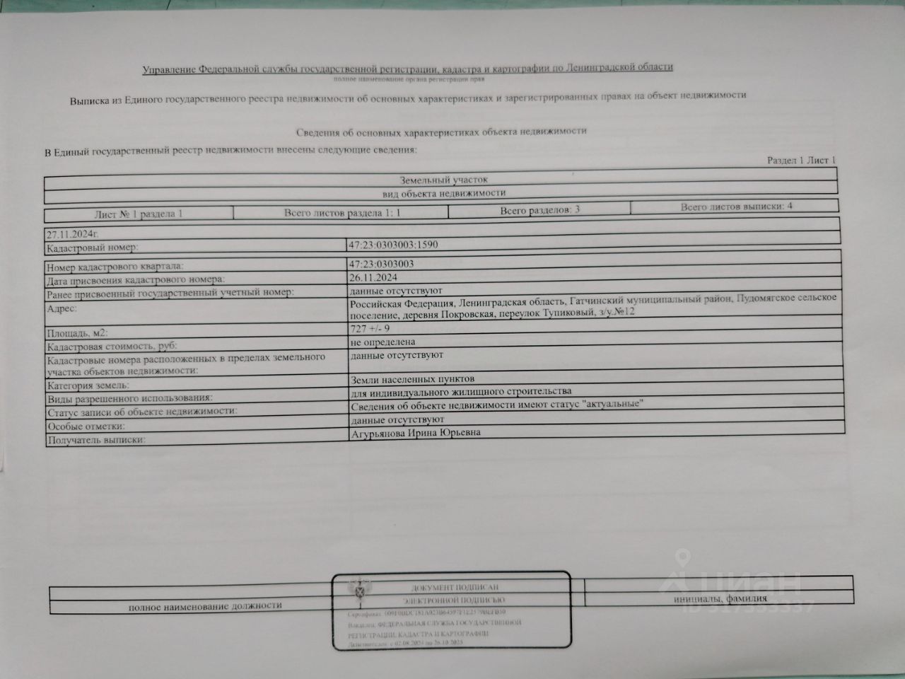 ПРОДАЕТСЯ земельный участок в деревне Покровская, ИЖС, общей площадью 14 соток, состоящий из 2х участков , кадастровый номер 47:23:0303003:1590 и 47:23:0303003:1589 Участки полностью обнесены забором из рабицы. Места хватит и на дом, и на подворье, и на сад-огород!! Отличное место для строительства и жизни ! Рядом Пушкин, Павловск. Участок сухой, высокий. Земля очень плодородная! Здесь все растет!! Соседи все приличные и благополучные, живут постоянно. Электричество 15 кв по границе участка. Для воды нужна скважина (60-70т.руб) Рядом с участком газовая магистраль. Мимо участка проходит грунтовая дорога в 35-40м. Дороги зимой чистят. Рядом магазин ''Вимос'', питомник растений, продовольственный магазин. г.Коммунар в 3 мин езды, в котором есть все необходимое. Автобусная остановка в 5 мин ходьбы. До Павловска и Коммунара каждые 10-15 мин регулярно ходят автобусы. Звоните, пишите. Все расскажу и отвечу на ваши вопросы. Место действительно чудесное! Приезжайте и посмотрите сами! никакого мусора! На участке только траву покосить надо. В этом сезоне руки не доходили. Немного усилий и участок станет не только УДАЧНЫМ вложением денежных средств, т.к земля здесь дорожает с каждым годом, но и местом, где можно прекрасно жить, отдыхать или трудиться в радости. Обременений нет. Документы готовы к продаже. Я - собственник. Таких предложений совсем немного. Пользуйтесь моментом. Сезон продаж заканчивается .Инфляция растет. Цены ползут вверх. Следующей весной будет дороже. Просмотры по предварительной договоренности. Торг. Звоните.