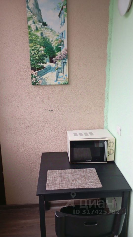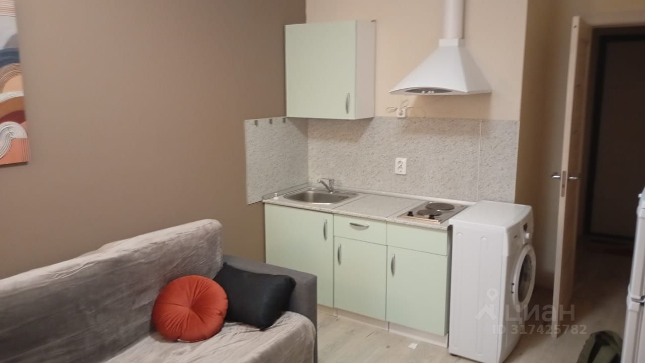 Студия полностью меблирована: есть вся необходимая мебель как в комнате, так и на кухне. Для вашего удобства в квартире есть холодильник и стиральная машина. В ванной комнате установлена душевая кабина. Окна выходят на улицу, а также имеется балкон для приятного отдыха на свежем воздухе.
