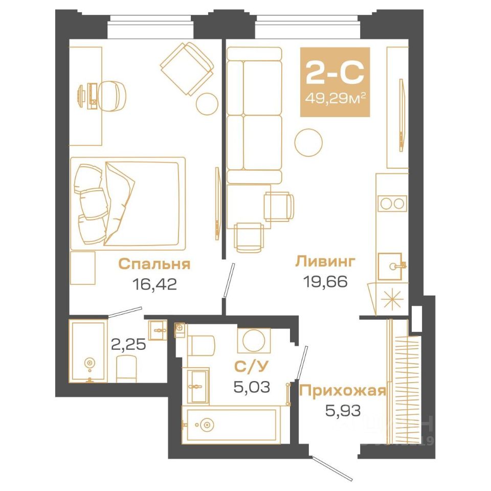 Общая площадь49,29 м2