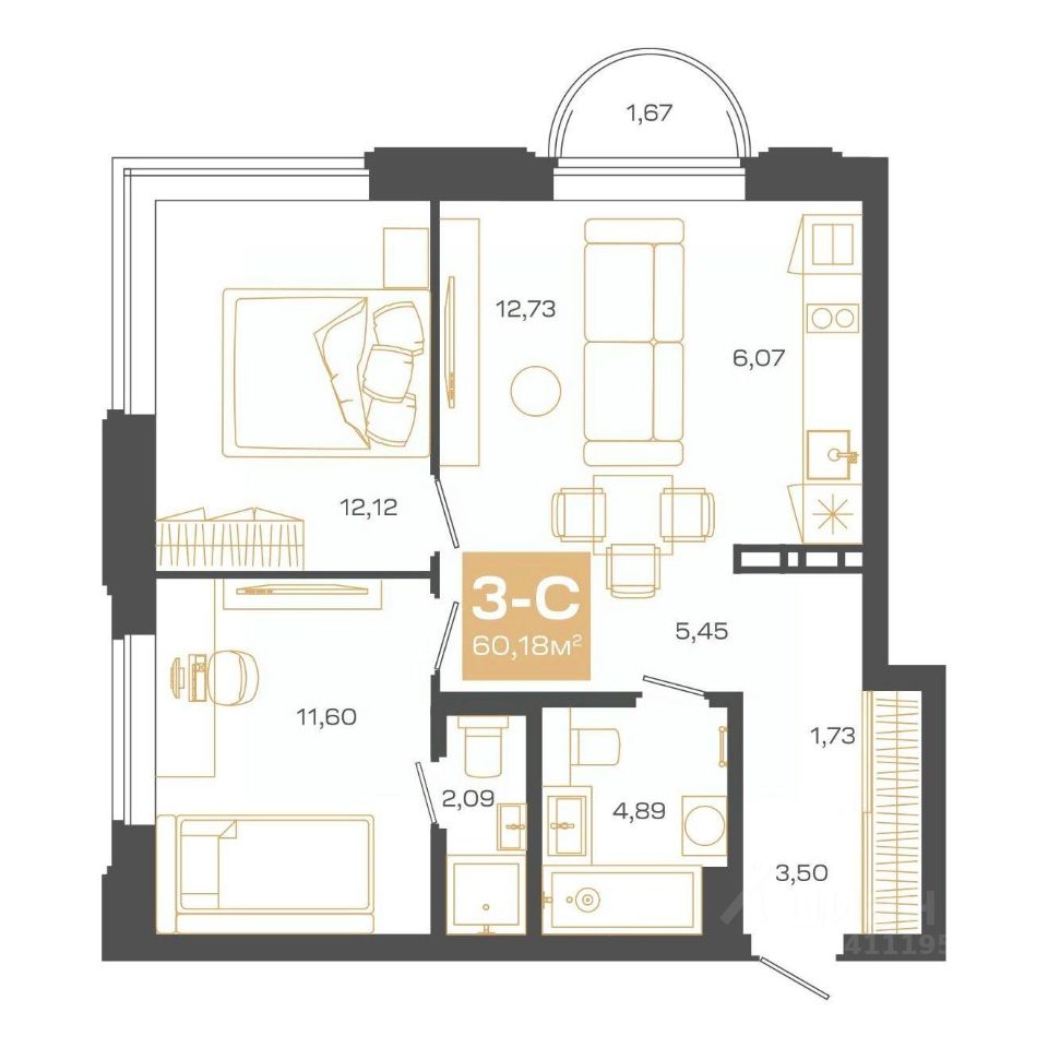 Общая площадь60,18 м2