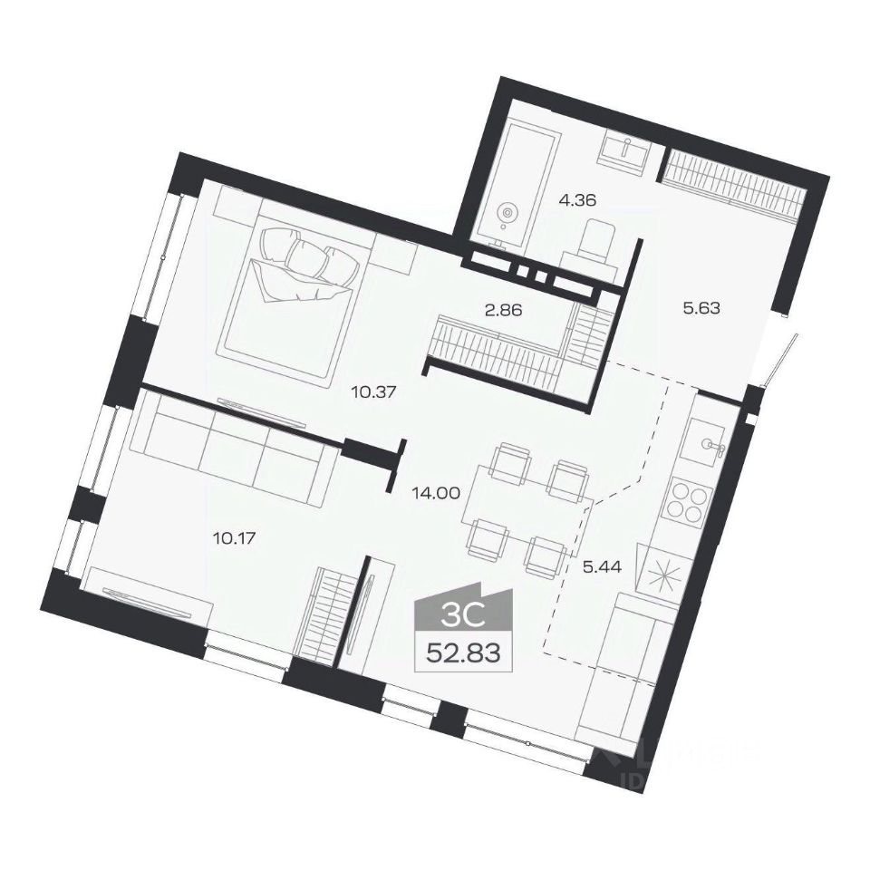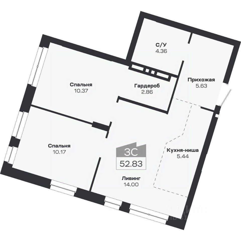 Общая площадь52,83 м2