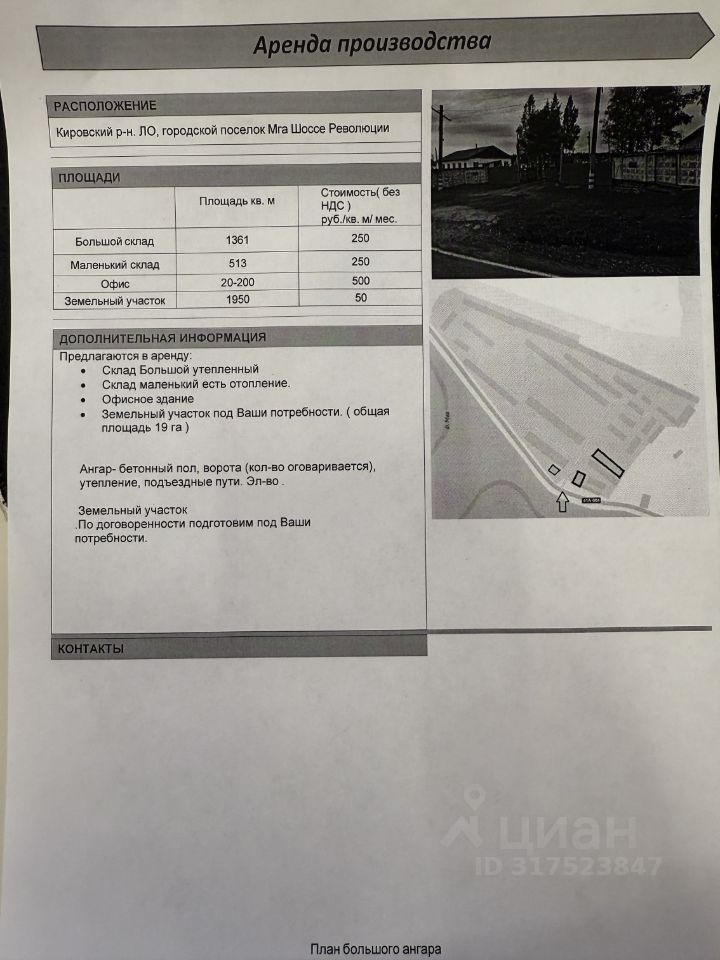 Ангар- бетонный пол, ворота (кол-во оговаривается), утепление, подъездные пути. Эл-во .