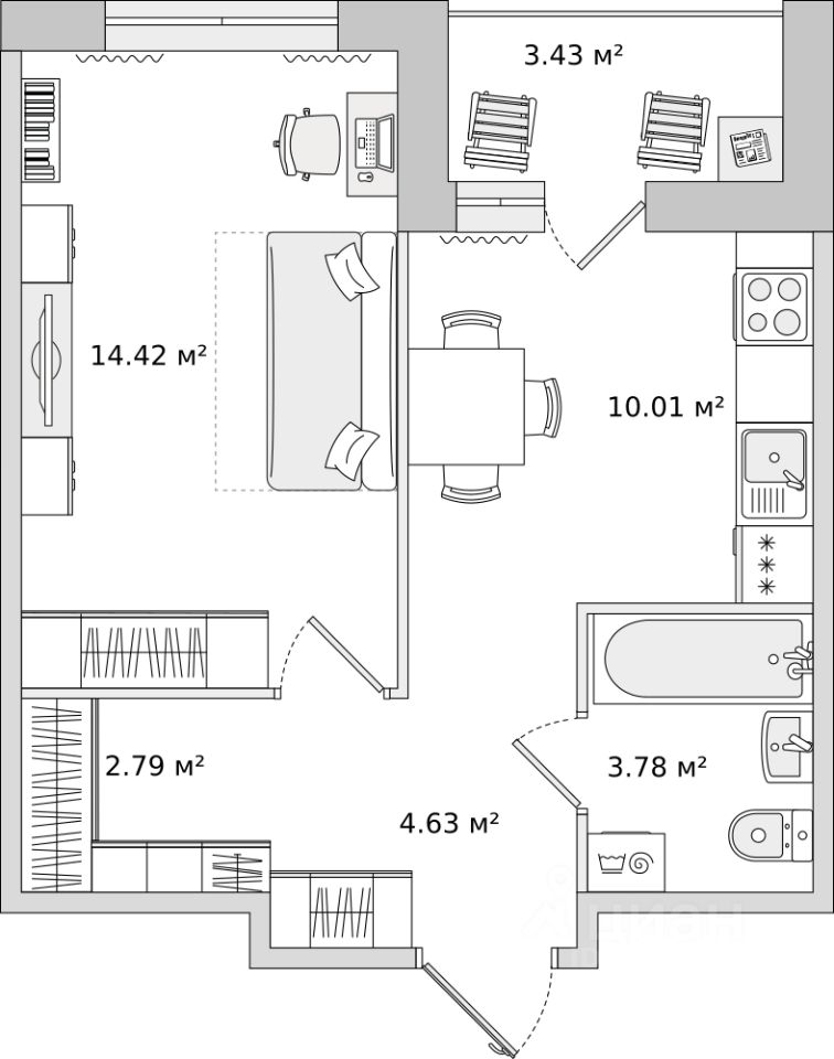 При покупке квартиры без участия агентов дарим сертификат новосела в магазин HOFF на сумму 50 000 рублей. Им можно оплатить не более 15% от суммы покупки.