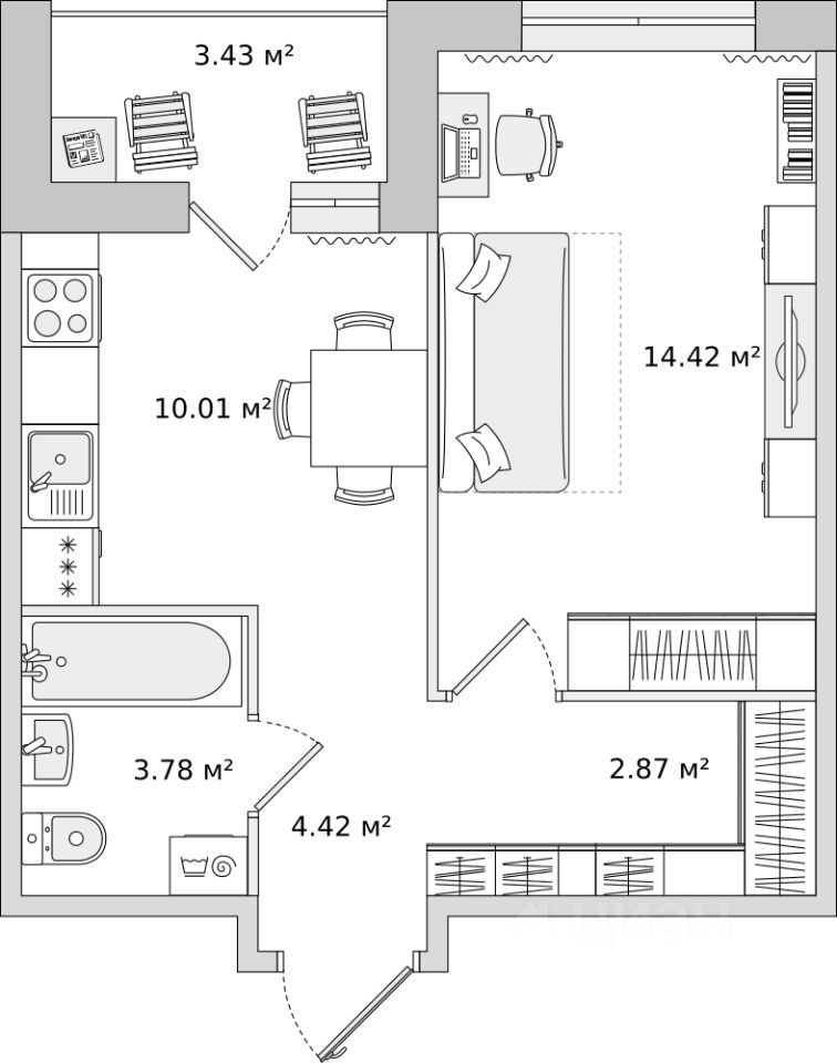 При покупке квартиры без участия агентов дарим сертификат новосела в магазин HOFF на сумму 50 000 рублей. Им можно оплатить не более 15% от суммы покупки.