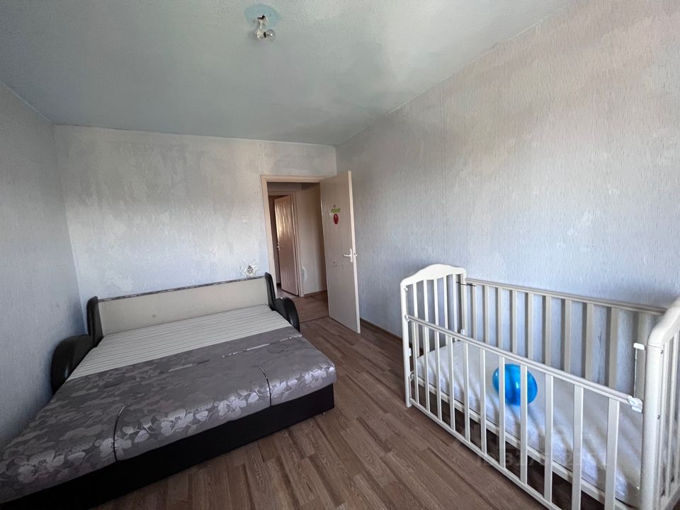 Квартира расположена на 5 этаже пятиэтажного панельного дома 1993 года постройки. Планировка квартиры двухсторонняя, комнаты изолированные просторные 17,2+12+13 кв.м, кухня 8,5 кв.м, санузел раздельный, есть кладовка и застекленная лоджия, с которой открывается прекрасный вид на лесополосу. Квартира без евроремонта, но аккуратная, есть холодильник, стиральная машина, двуспальный диван, детская кроватка, мягкая мебель в гостиной, кухня полностью оборудована мебелью и техникой. Чистая отремонтированная парадная с цветами на каждом этаже.