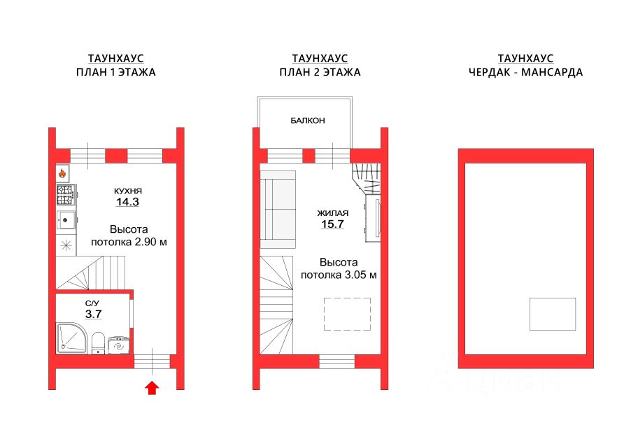 • Ваш будущий таунхаус — 33,7 м² + полноценный чердак-мансарда, который можно устроить по своему вкусу.
