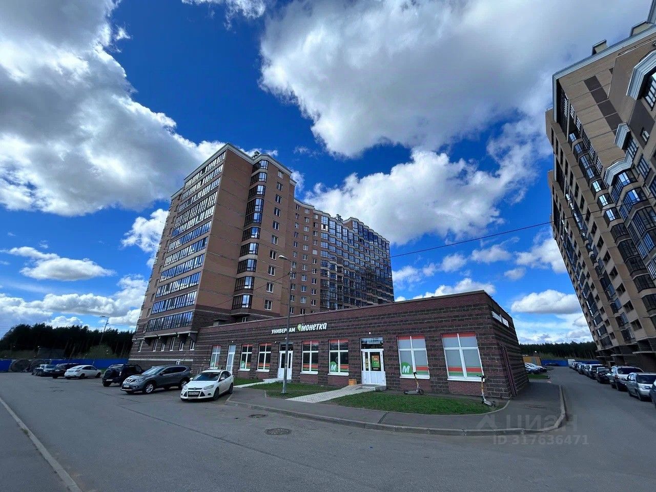 Во дворе напротив находится продуктовый магазин ''Монетка'', через дорогу за остановкой ''ГиперЛента''. Во дворе пункты выдачи Озон, Вайлдбериз.