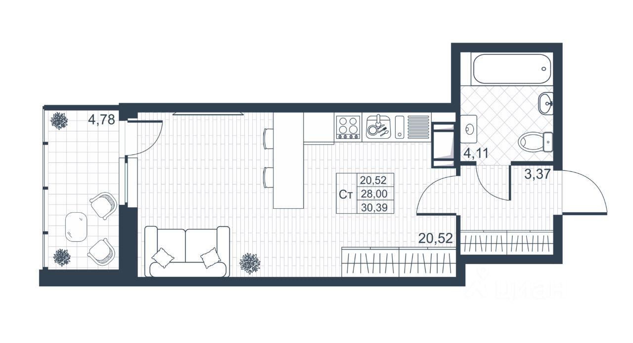 Общая площадь28,6 м2