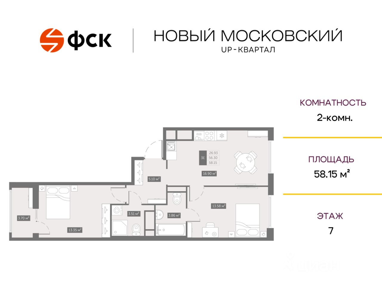 Общая площадь57,8 м2