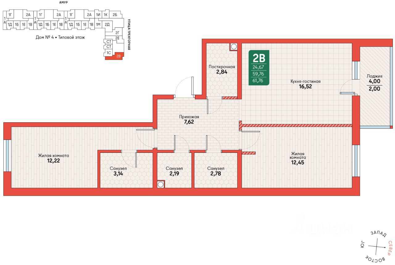 Общая площадь61,76 м2