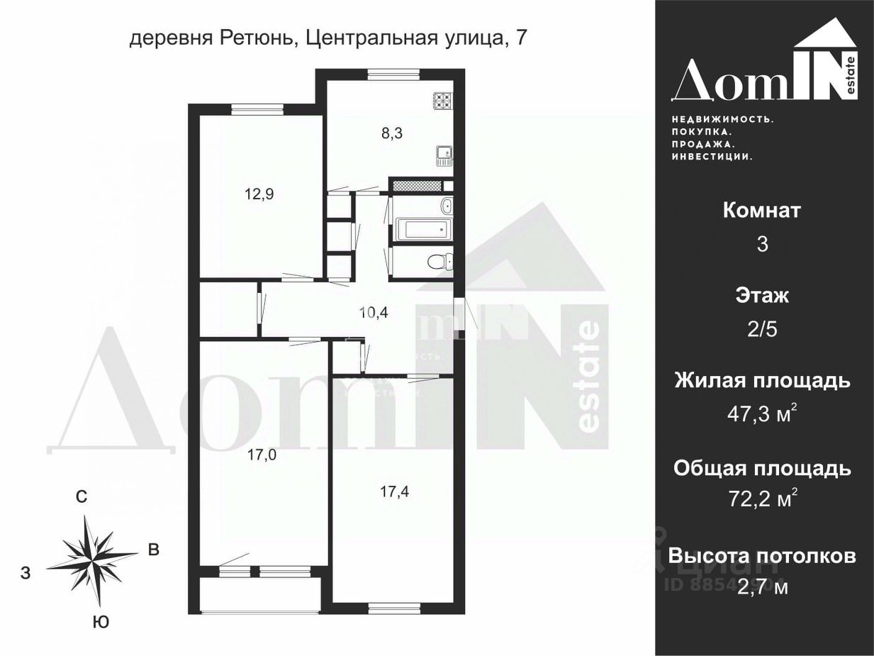 Арт. 105035768 Продаётся просторная трёхкомнатная квартира в деревне Ретюнь. Идеальный вариант для семьи или для пожилой пары к которой приезжают внуки на каникулы.