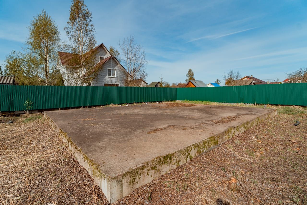 Участок ровный, прямоугольной формы, межевание проведено. По периметру огорожен забором. Старый дом снесли, вам не нужно заниматься очисткой территории. Заложен фундамент, плита. Глубина 1,5 метра, размер- 10,5 на 12 метра.